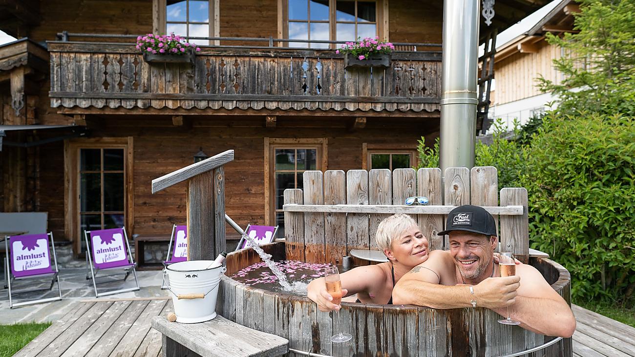 Die Almlodge Deluxe begeistert mit eigener Terrasse, privatem Hot Pot und eigenem Saunabereich angeschlossen an den großzügigen Wohnraum. Hier trifft alpiner Charme auf modernen Komfort – ideal für Familien oder Freundesgruppen, die gemeinsam entspannen möchten.