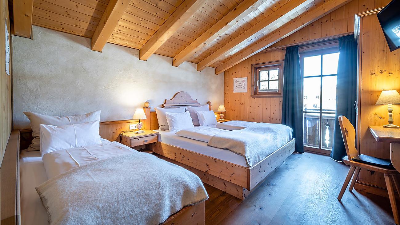 Smart double room in the Adventure Lodge overlooking the garden and the Almlodges: